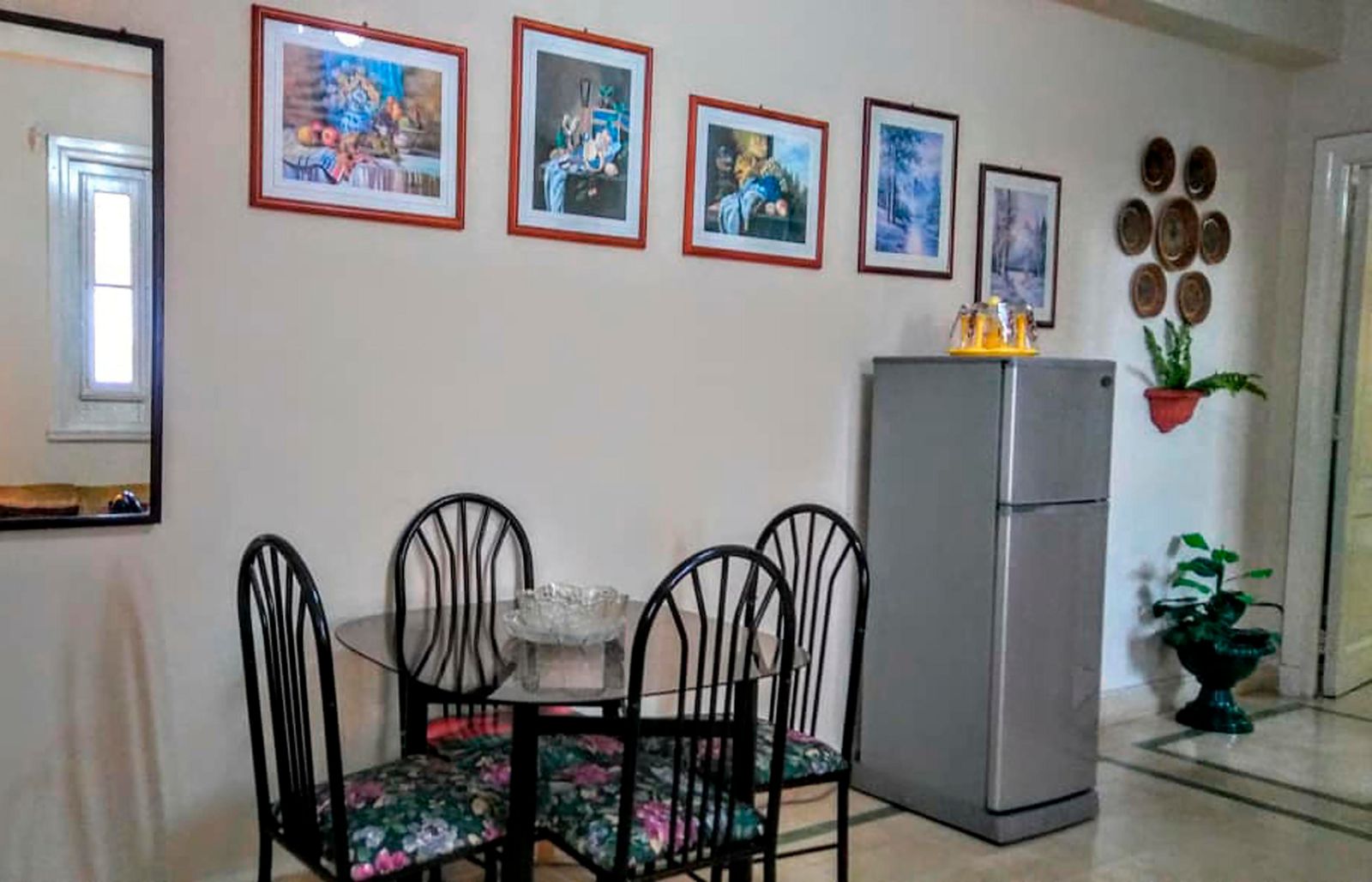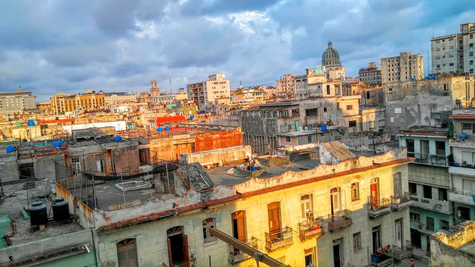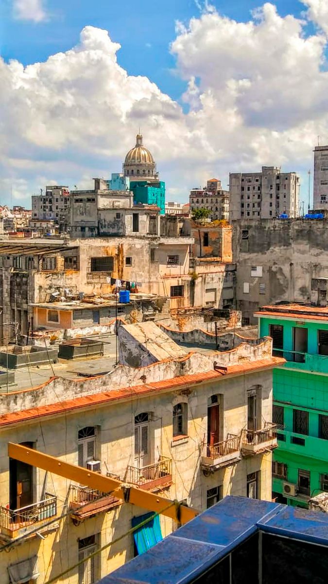 It is rented as a whole, not by rooms. It consists of a spacious, ventilated room with an extensive panoramic view of Old Havana (among other landmarks, you can see the colonial lighthouse and the dome of the emblematic Capitol). The room has a double bed and has a private balcony with good views. It has air conditioning (silent, Split type), refrigerator, flat TV, DVD, hot water, 110V and 220V power, safe and telephone. Equipped kitchen (microwave, oven, mixer, gas stove with 4 burners, rice cooker, coffee maker, refrigerator, pots, dishes...). The bathroom has a bathtub with shower.